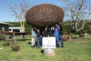 Le ballon de rugby géant du vignoble Te Mania fait partie des expositions de sculptures de la vigne qui se tiennent pour la 1ère fois dans tout le pays. Le vignoble expose son ballon de rugby jusqu'à fin octobre.