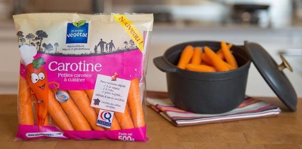 Carotine, la nouvelle référence de Planète Végétal, est composé d'une douzaine de petites carottes fraîches. Carotine permet une cuisson rapide à l’eau ou à la vapeur et améliore la présentation finale de l’assiette. Elle peut s'intégrer dans les plats traditionnels ou être préparée de manière plus moderne (wok, plancha).