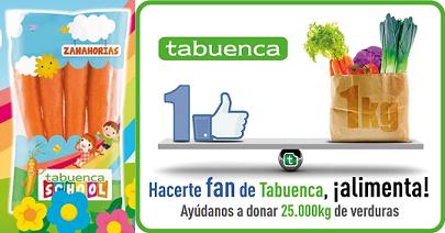 De plus, Tabuenca a pris l'initiative d'une campagne de solidarité sur Facebok pour donner 25 000 kilos de légumes aux plus démunis. L'opération ('Hacerte fan de Tabuenca, ¡alimenta!') est ouverte jusqu'au 1er décembre. Chaque "j'aime" enregistré va permettre de donner 1 kilo de légumes à la Banque Alimentaire.