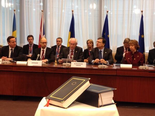 Négocié entre 2007 à 2012, cet accord prévoit une coopération avancée dans différents secteurs : politique extérieure, politique énergétique et nucléaire, secteurs légal et judiciaire. Les chapitres instituant une zone de libre échange et prévoyant une large coopération économique seront entérinés après les élections du 25 mai en Ukraine et la formation du nouveau gouvernement, et après le lancement d'un programme d'assainissement et de réformes économiques.