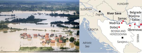 Des niveaux d'inondations, pas vues depuis 1 000 ans, selon le Premier ministre serbe, Aleksandar Vucicsaid. Certains témoins ont dit avoir assisté à un "tsunami", un mur d'eau de plus de 4 métres a ravagé des zones entières, environ 300 glissements de terrain ont provoqué des torrents de boue, les ponts ont été emportés et les routes détruites.