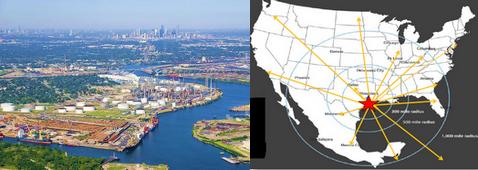 Le Port de Houston est la parfaite plateforme pour le commerce, sa position géographique, les multiples possibilités de transports vers toutes les destinations du pays, lui permettent de se positionner comme le le 7ème port américain pour les conteneurs et le 13ème plus grand port du monde (en tonnage).