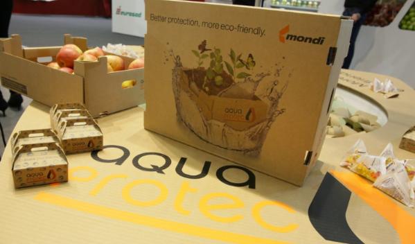 Nouvelle solution innovante présentée par la société MONDI : le carton "Aqua" qui résiste à l'humidité.