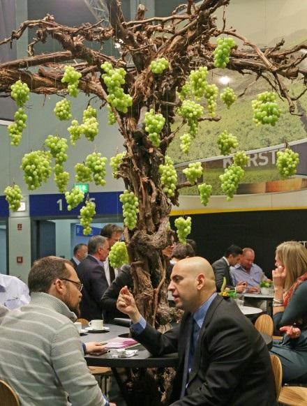 L'aménagement du stand Karsten a suscité de nombreuses photos. L'arbre portant des grapes de raisins soulignait l'importance du raisin dans l'éventail de produits proposés par la société.