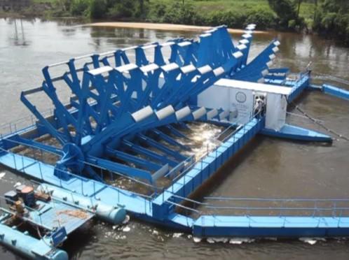 Une hydrolienne est une turbine posée sur l'eau et à demi immergée qui utilise l'énergie cinétique des cours d'eau, comme une éolienne utilise l'énergie cinétique de l'air. La turbine de l'hydrolienne permet la transformation de l'énergie hydraulique en énergie mécanique, qui est alors transformée en énergie électrique par un alternateur.