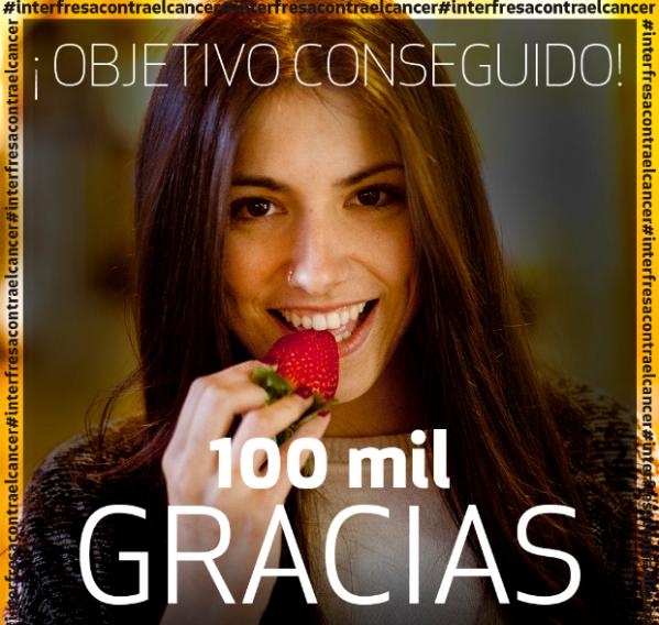 Interfresa a atteint son objectif bien avant la date fixée de rassembler sur les réseaux sociaux 100 000 personnes en train de croquer une fraise pour soutenir la recherche contre le cancer.