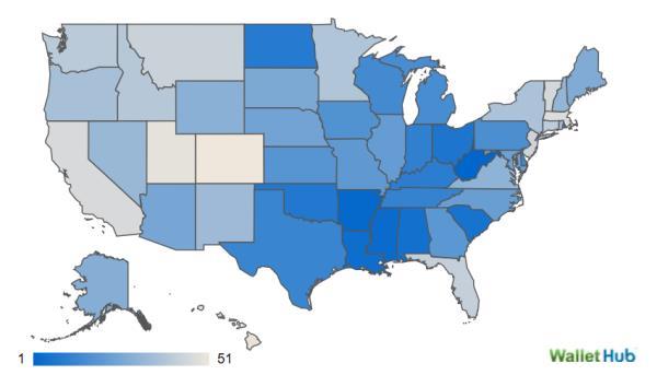 Les Etats où le pourcentage des personnes obèses est le plus important : Mississippi, Louisiana, Arkansas, Kentucky, Tennessee.