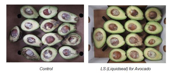 Ainsi la formule actuelle de Liquidseal pour les avocats s'avère fonctionnelle sur les peaux vertes et entraîne une réduction de 70% de la perte de poids, tandis que les peaux vertes sont encore capables d'entrer dans leur stade de maturité. Il a été obtenu une fermeté améliorée - plus de 50% au-dessus de 2 kg / cm2. En outre, l'équipe a déterminé une quantité accrue d'avocats comestibles.