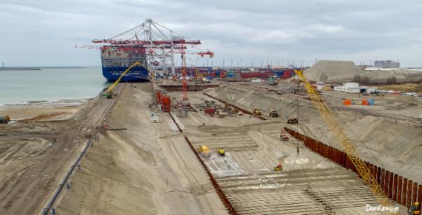 Lancés en février 2017, les travaux de l'extension du quai de Flandre sont toujours en cours et vont continuer jusqu'à fin 2018. A l'issue des travaux, le quai de Flandre présentera un linéaire total de 1.800 m, avec un tirant d’eau de 16,5 m à toutes conditions de marée. Permettant d’accueillir simultanément à quai 2 porte-conteneurs megamax de nouvelle génération.