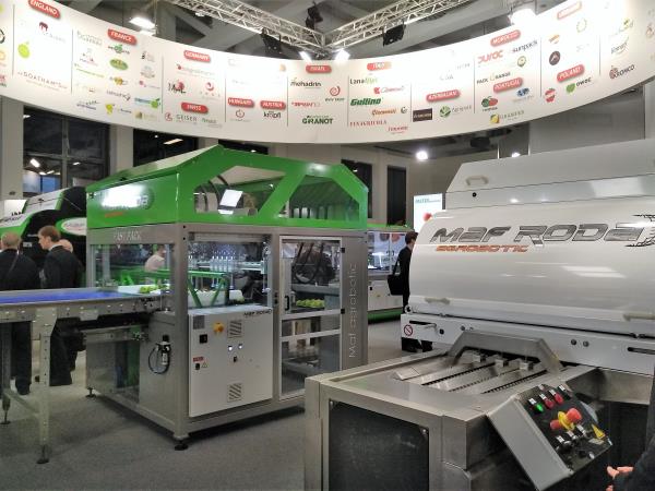 L’Équipe MAF RODA a présenté plusieurs nouveaux équipements lors d’édition 2019 du salon FRUIT LOGISTICA à Berlin : la calibreuse BI-AXONE pour les poires et les robots FAST PACK et Line Pack pour l’emballage automatique des pommes, ainsi que la toute dernière génération de l’électronique phare de la MAF, le GLOBALSCAN G7 pour le contrôle qualité externe des fruits.
