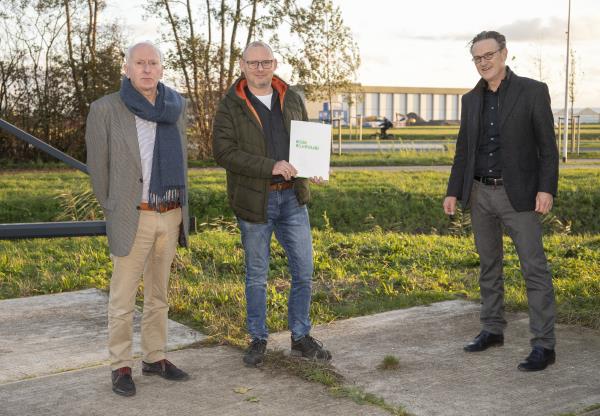 Eric Barendrecht, directeur général de l'AFL Barendrecht et Gert-Jan Metselaar, directeur du GRNR (Gemeenschappelijke Regeling Nieuw Reijerwaard) ont signé un accord sur la réservation d'une parcelle de plus de 2,2 hectares (22 245 m²) sur la Nieuw-Reijerward.