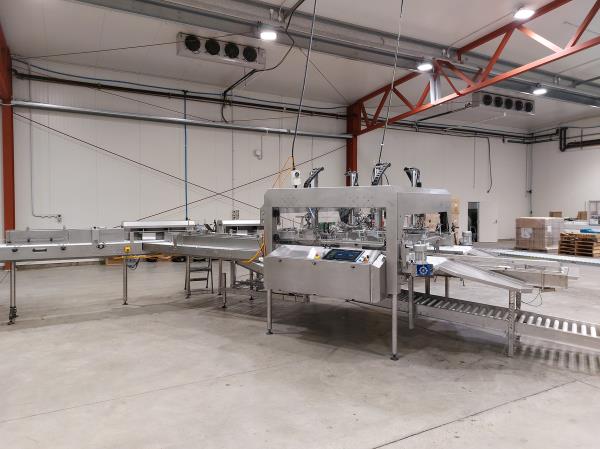 La KETE16 automatise le processus de placement des barquettes et des coques dans des plateaux, des caisses, des boîtes et des casiers, en s'intégrant parfaitement à la capacité et à la vitesse de la machine de remplissage, la CURO16.