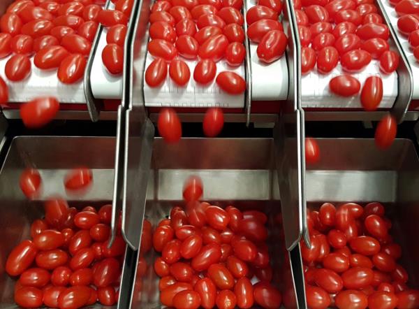 Pour les petites tomates à grignoter, TOMRA propose 2 trieuses : la MIRA360 et la Small Fruit Sorter (SFS) équipée du système de classement InVision2. En outre, TOMRA propose un large choix de solutions de pesage et de remplissage automatiques pour les tomates de toutes tailles.