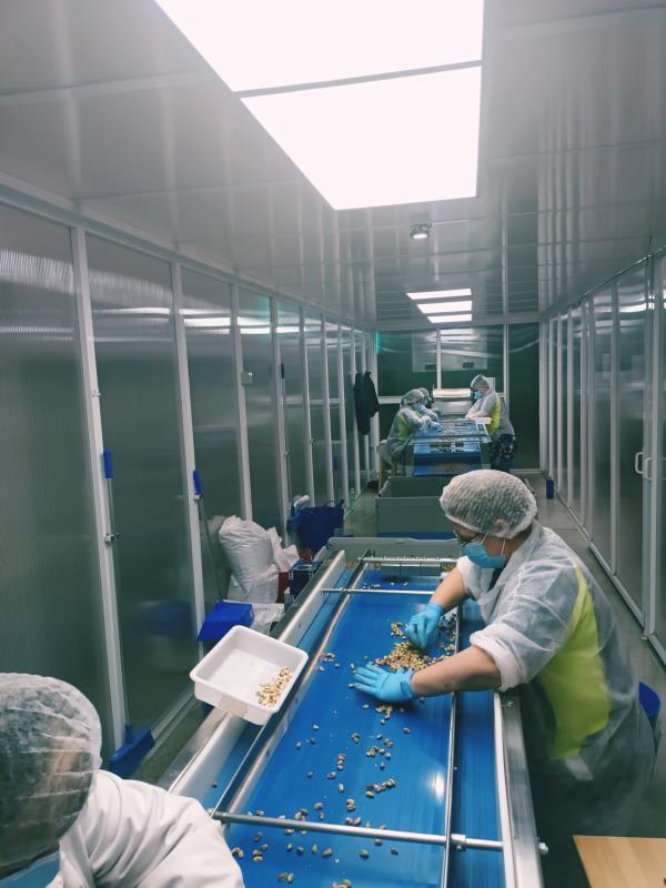 La coopérative a introduit une machine TOMRA 5C dans la phase de séparation, de calibrage et de tri du processus, où elle sépare les pistaches tachées des pistaches propres et trie avec précision les amandes après le cassage des noix fermées.