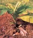 Le Bunchy Top ou BBTP provoque la pousse de toutes les feuilles du bananier depuis le sommet de la plante, les bords des feuilles atteintes se recourbent vers le haut et jaunissent, empêchant la croissance.
