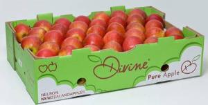 Divine (croisement de Golden Delicious, Grive Rouge, Florina) est une pomme ferme, croquante et juteuse, avec une texture ferme. De couleur rouge avec un fond jaune, sa taille va de moyenne à grande.