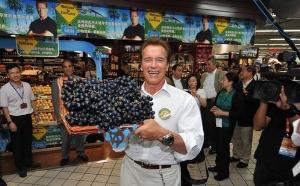 L'agriculture n'a pas été oubliée, et le gouverneur n'a pas perdu une occasion de vanter les qualités des agrumes, des raisins ou des pistaches de Californie.