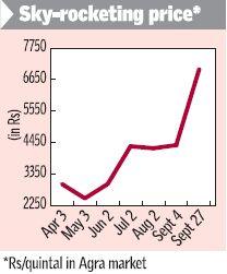 Au marché d'Agra, le quintal d'ail se négociait Rs 550 en Mars 2009, il vient d'atteindre Rs 7,000 ces jours-ci.